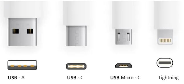 Er zijn 3 type connectoren die in je smartphone kunnen zitten, USB-C en Lightning en in oudere telefoons micro-USB. Onderstaand de afbeeldingen getoond.